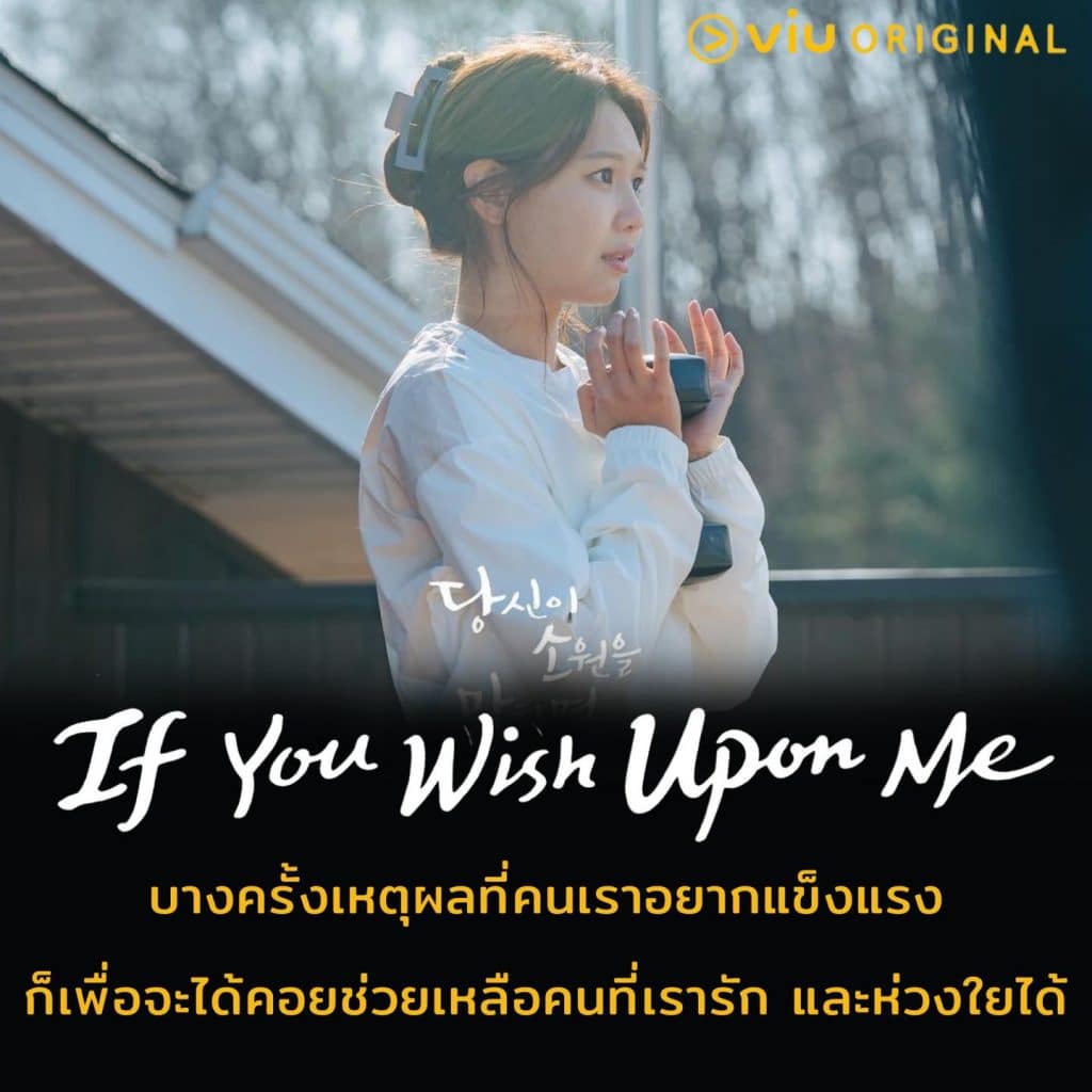 มาแล้ว 2 ตอนแรก กับ Viu Oroginal เรื่องใหม่ If You Wish Upon Me ซีรีส์น้ำดี ที่ได้รับเสียงชื่นชมตั้งแต่ตอนแรก นำแสดงโดย จีชางอุค รับบทเป็น “ยุนกยอรเย” อดีตนักโทษที่ทั้งชีวิตไม่เคยได้พบกับความสุข หลังพ้นโทษจากคุก เขาได้กลายมาเป็นอาสาสมัครดูแลผู้ป่วยระยะสุดท้าย ภายใต้ชื่อ “ทีมจีนี่” และได้พบกับ ชอยอนจู รับบทโดย ชเวซูยอง พยาบาลสาวสวยที่ทำงานอยู่ในสถานดูแลผู้ป่วย นำทีมสร้างความสุขในช่วงสุดท้ายของชีวิต โดย คังแทชิก รับบทโดย ซองดงอิล