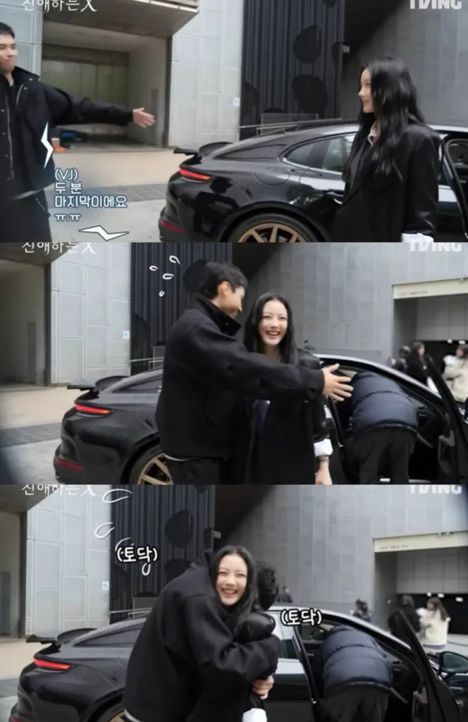 คิมยูจองและคิมโดฮุนจึงโผเข้ากอดกันอย่างอบอุ่น บรรยากาศเต็มไปด้วยความหวานราวกับคู่รักตัวจริง
